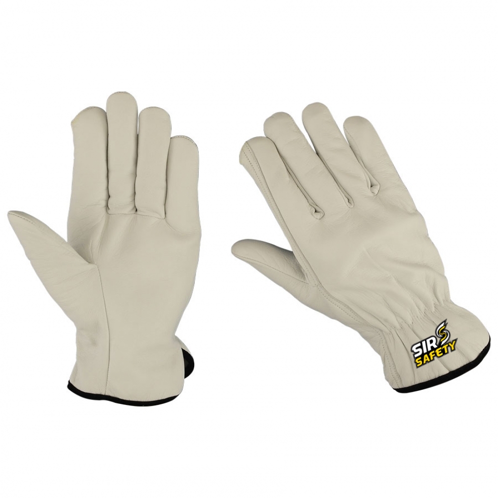 Full goat leather gloves straight thumb & straight finger shirred elastic on back black piping.