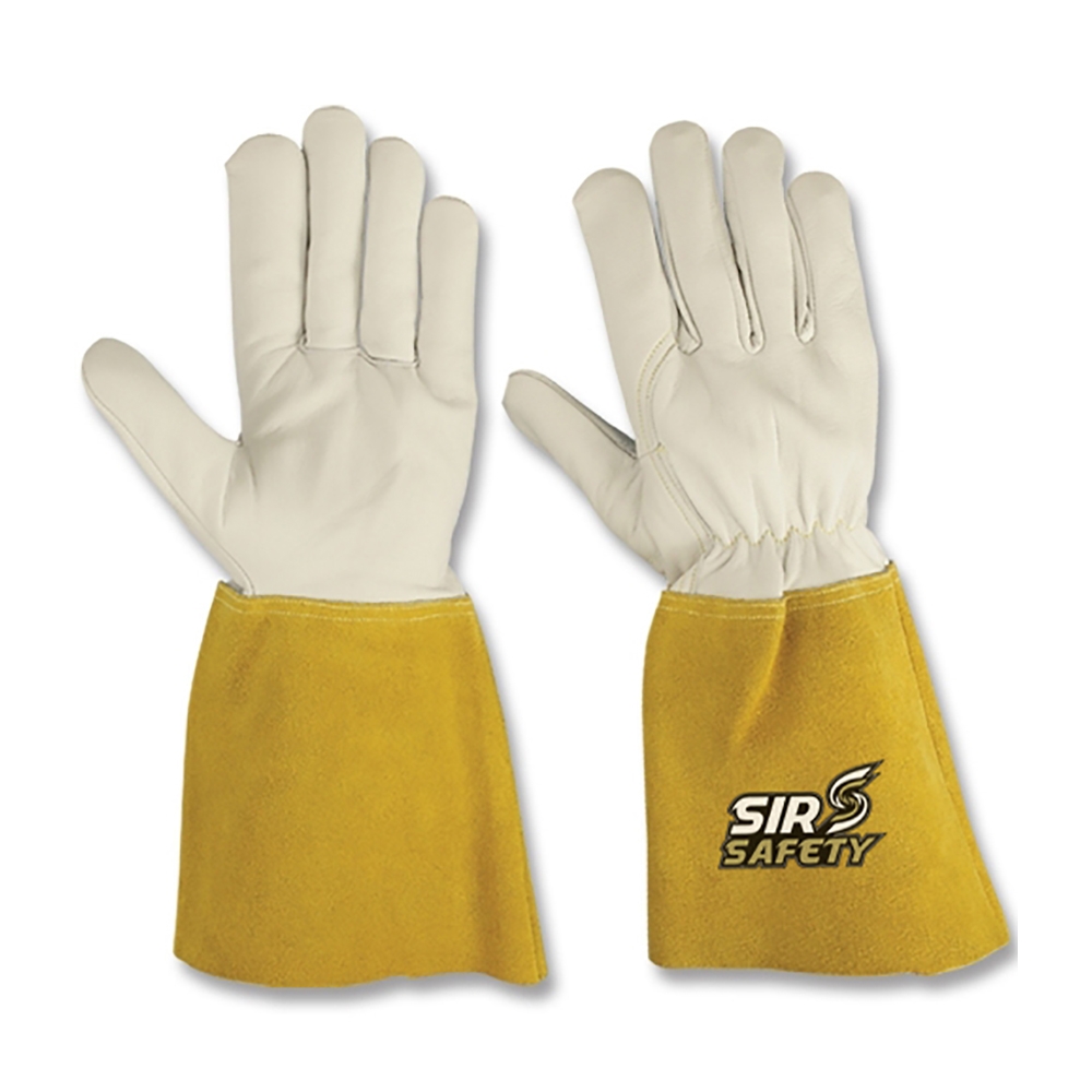 Full goat skin leather with 15 CM cuff yellow split leather wing thumb index finger shirred elastic with kevlar thread